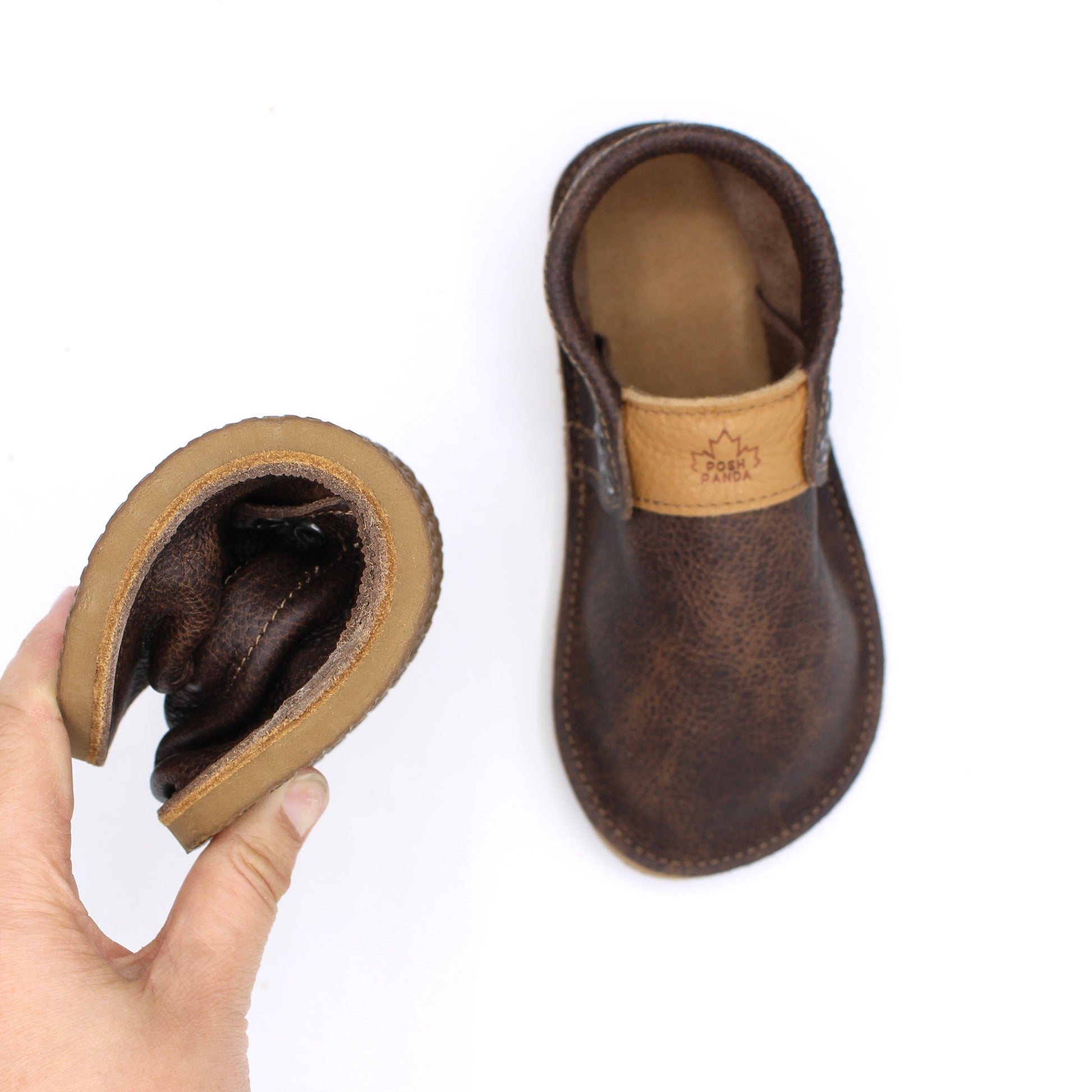 WHISKEY Leather: This is a weathered/aged looking leather that just gets better with time. This leather is a nice thickness but still super soft giving it a bit of structure but still will stretch and form to your feet like a glove.